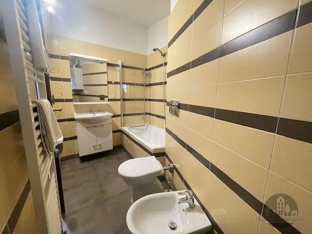 We offer for rent an apartment laid out as 3+kk, located on the 6th floor of a brick building with an elevator on Cimburkova Street, Prague 3. The apartment is offered furnished. It consists of a room with a kitchenette, 2 bathrooms with toilets, and 2 bedrooms. There are parquet floors. Pets allowed. Available immediately.